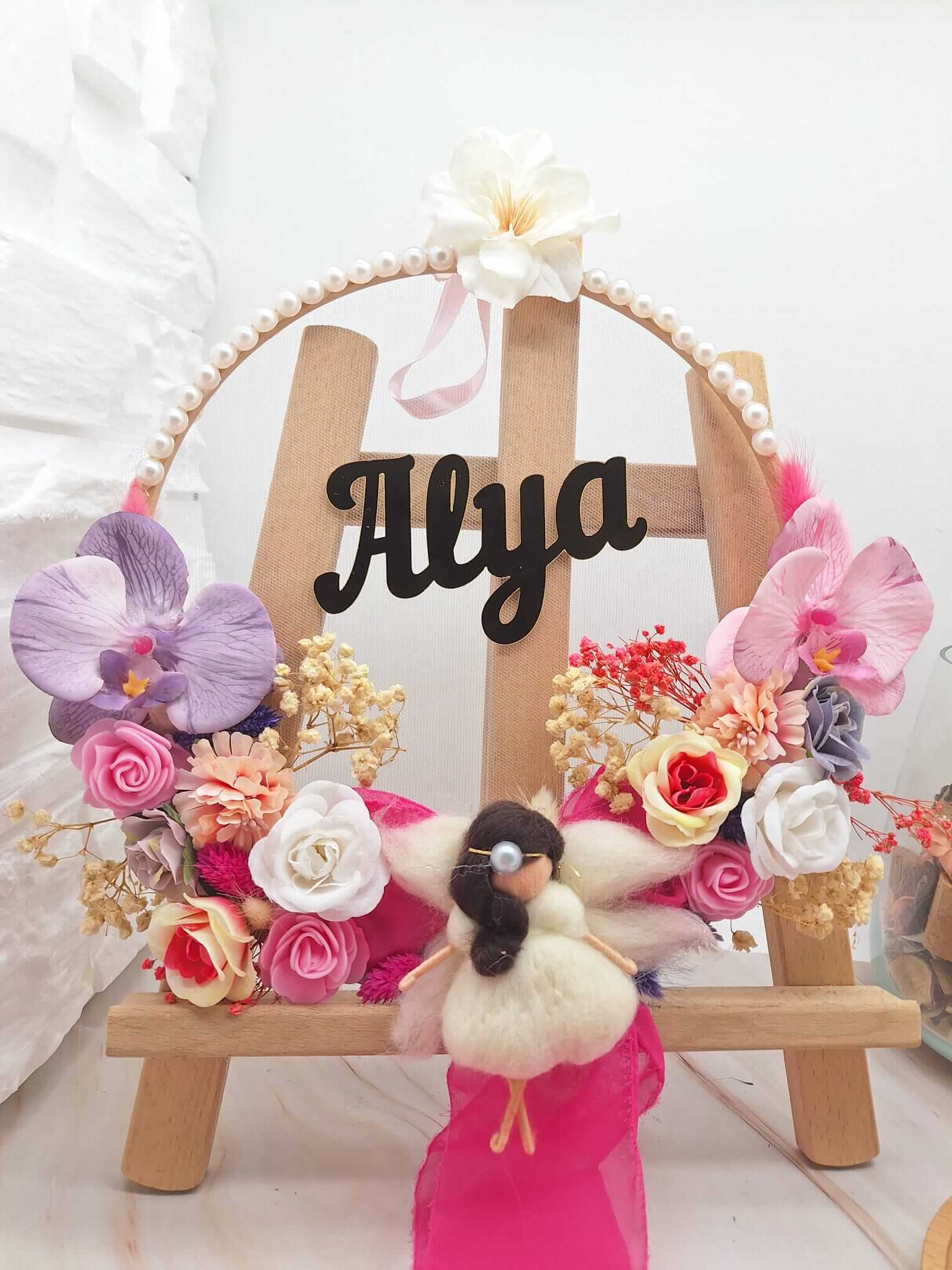 • Materyaller: Ahşap, strafor, peluş figürler, kumaş detaylar ve pleksi isimlik