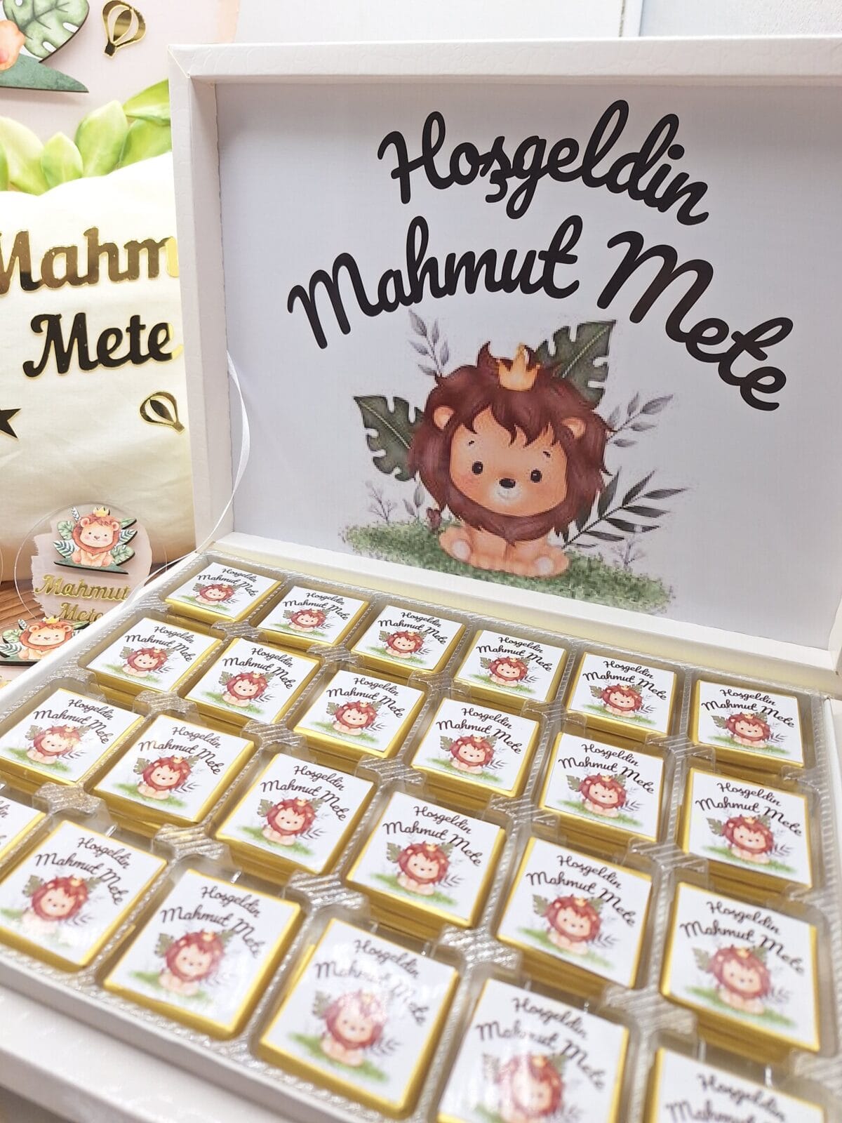 50 adet isme özel çikolata.